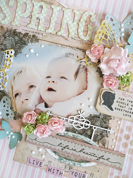 ...and my first layout is also about spring, first spring of my friend's daughter. Cute baby face in a first spring sun - it's a beautiful theme to work with! I used here Pretty In Pink collection with a little help from Beautiful Dreamer line. I picked soft colors to make fresh, delicate page. I totally love the new product - Layered Stickers and I am sure you will love them too! Beautiful quotes and classic design is perfect for every occasion! As usually I used Paper Layers on the background and matting the photo. Pretty In Pink have absolutely stunning Paper Layers, very shabby chic and very classy!